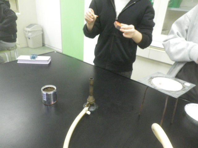 小学校では、ろうそくやアルコールランプ、実験用ガスコンロなどを使いますが、中学校ではガスバーナーで実験をします。