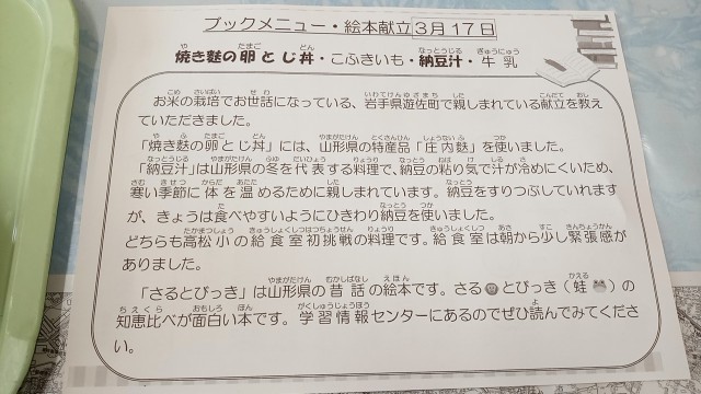 給食「山形県遊佐町 交流給食・絵本給食」
