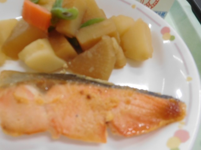 あきた米ごはん・のりのつくだに・鮭の西京焼き・じゃがいもと大根の煮物・せとか・牛乳
