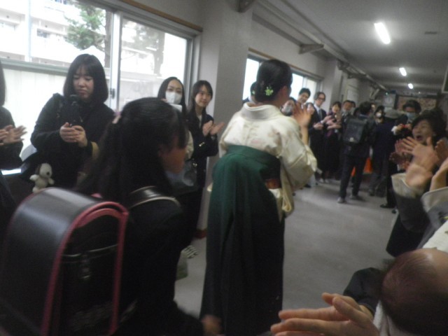 卒業式を無事に終え、門出送りをしました。6年間学業に専念した校舎から卒業していきました。