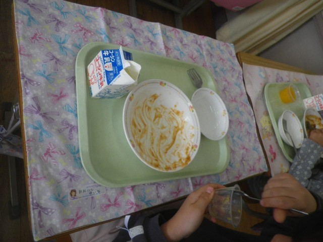 ハヤシライスとサラダ、みかんゼリーというメニューをみんな美味しそうにたいらげていました。