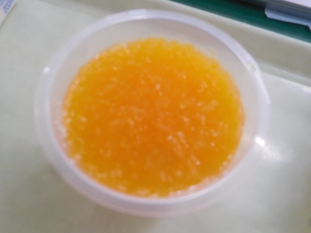 みかんの缶詰を荒くミキサーにかけてつぶつぶ感をだしています。