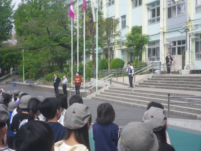 目白警察署の方を高松小学校にお招きし、交通安全集会を行いました。