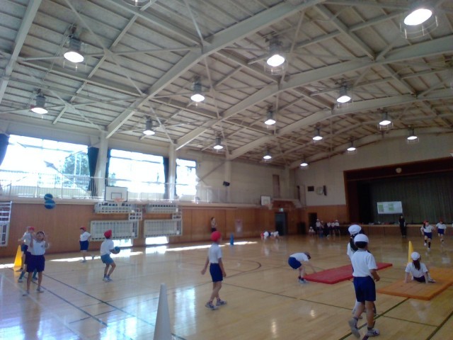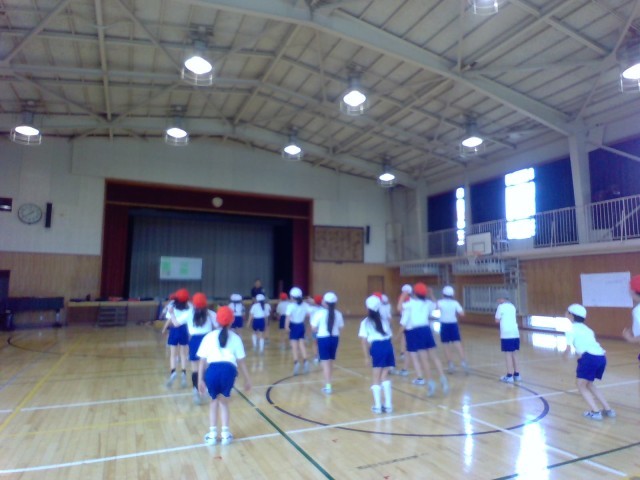 3年生は、体育館で体つくり運動をしています。