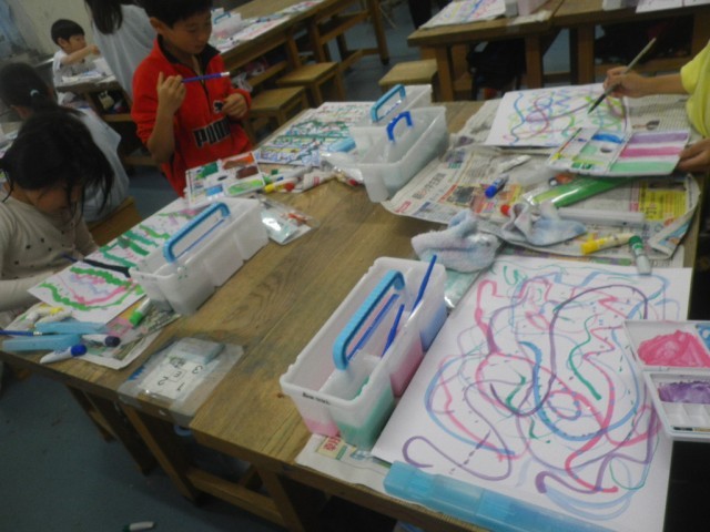 子ども達はカラフルな絵の具を使って、素敵な模様をつくりだすことができました。