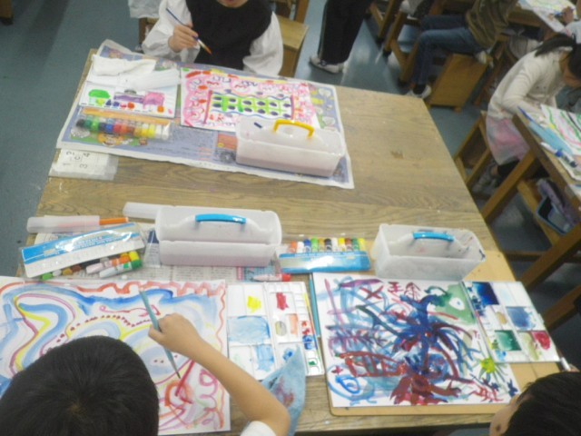 3年生の図工の時間に「せんとてんのぼうけん」という題材で、線と点だけを用いて自分が「いいな」と思う模様を描きました。