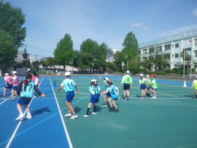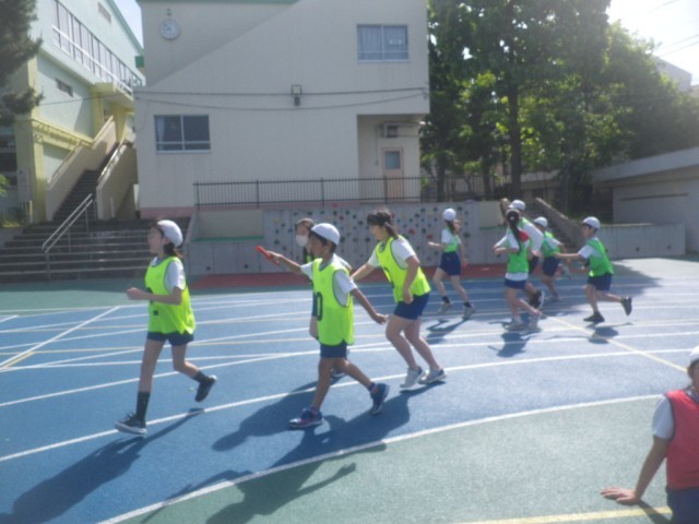 6年生が体育の時間に、リレーに取り組んでいます。みんなでバトンパスの練習をし、上手にバトンを次の走者に渡せるようになりました。