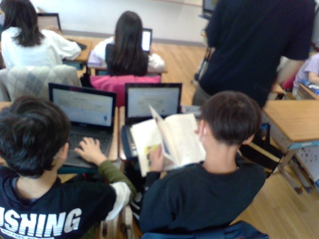タブレットで調べたことを、教科書の叙述に立ち戻り、確認する姿も見られます。