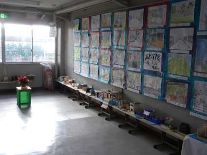 65周年式典の日に向けて、図工専科の先生を中心として、子どもたちの作品を使って校内の掲示を行いました。12月いっぱい掲示する予定です。