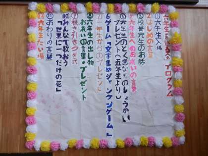 「6年生を送る会」は、今までお世話になった6年生に在校生がお礼の気持ち込めて行う会です。