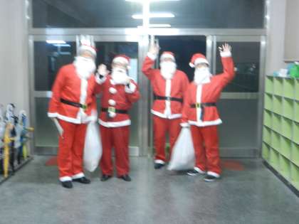 毎年クリスマスが近くなると現れる、サンタクロースが今年も高松小の周りに現れました。