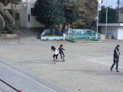2学期の終わりに、1年生の女の子と話す機会がありました。その際に、その子から、一輪車が得意との話を聞いたので、ぜひ見せてほしいと依頼したところ、今週の月曜日に友だちと一緒に一輪車の技を見せてくれました。
