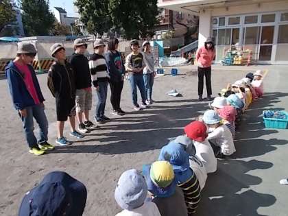 8日(木)6年1組が高松第二保育園で保育実習を体験させていただく、職場体験を行いました。園長先生から園児と遊ぶ際の配慮事項を学び、0歳から5歳児のグループに分かれて実習を行いました。安全面に気を付けながら園児と楽しく職場体験を過ごすことができました。