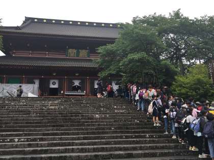 いろは坂を下り、輪王寺に到着しました。小学校の団体が多く混んでいます。かなり待ってから、やっと三仏堂に入ります。