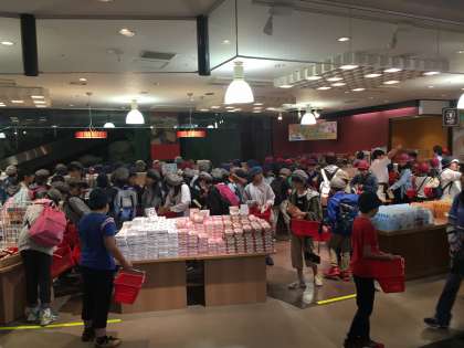 昼食後は、お土産の購入です。他校の子と一緒になってしまい、大変な騒ぎです。買うものを直ぐ決める子やじっくり選ぶ子、2000円ぴったりを狙う子等、性格が出ます。
