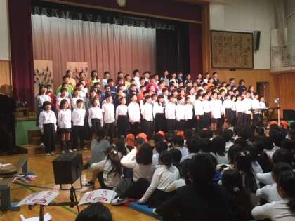 4年生の演目は、劇「おじいさんのランプ」です。高松小学校の実生活を思い出し、2020年東京オリンピック・パラリンピックを意識した劇です。