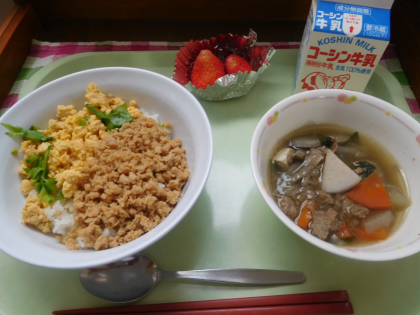 キムチチャーハンは、学年ごとにキムチの汁の量を調整しています。低学年は、辛さ控えめ。高学年になるにつれてキムチの汁を足し少し辛めに作っています。キムチは、えびやりんごを抜いたものを納品してもらい、アレルギーのないものを使用しています。
