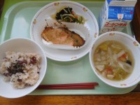 れんこん・切り干し大根・梅肉という、低学年には苦手な人が多そうな和え物です。かたまりのれんこんが苦手なら、うす切りにすると食べやすくなります。みんなは、食べられたかな?