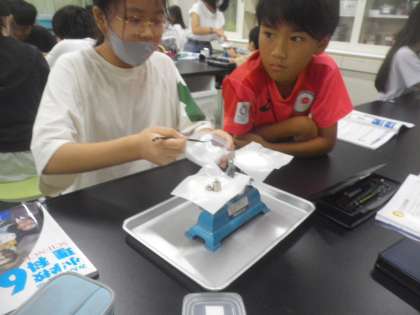6年生「てこのしくみとはたらき」という単元で、てこの原理を利用した道具「てんびん」について学習しました。おもりと支点からの距離を計算したり、上皿天秤を使ってものの重さを量りました。