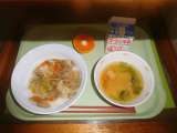 11月20日(月)の献立 ぎょうざ丼・バンサンスー・くだもの ぎょうざ...