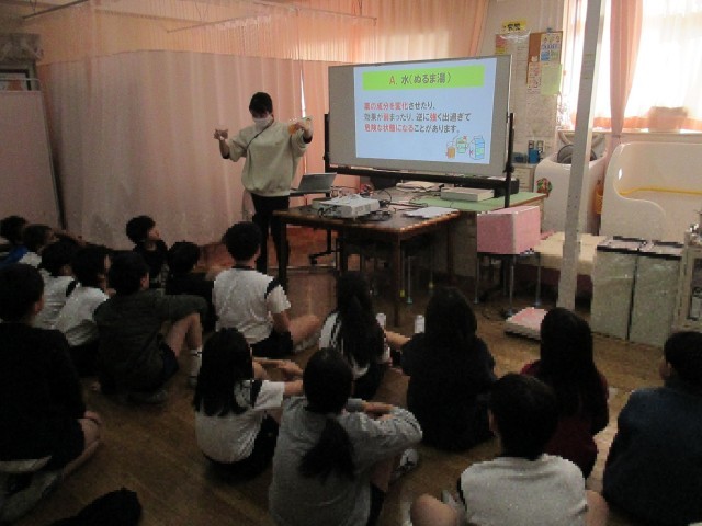 そこで、人間には「自然治癒力」が備わっていること。病気やけがをしたときに、健康を回復するための補助や病気の進行を抑える働きをするのが薬であることを説明。クイズや実験を交えながら、薬の正しい使い方について一緒に確認しました。