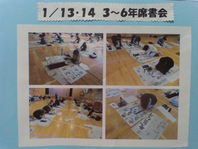 13日、14日に、3〜6年生がそれぞれ学年で集まっての書写の授業、いわゆる「席書会」を行いました。