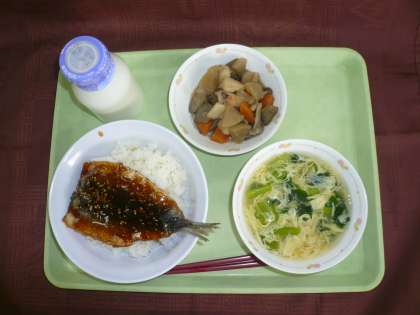 ・牛乳 ・イワシのかば焼き丼 ・野菜のうま煮 ・かき玉汁