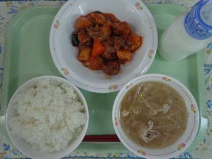 職員室の先生方から「わあ。酢豚だぁ。」との会話があり。