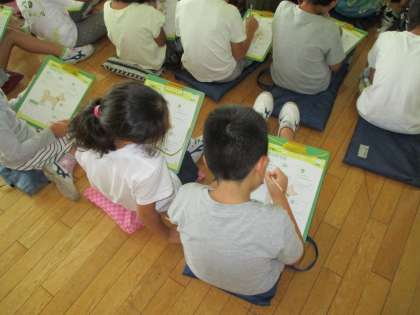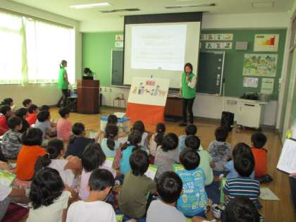 ○本日2年生が、動物教室サポートセンターの方に来ていただき、動物教室を行いました。今日取り上げた動物は 犬 です。プログラムの中では