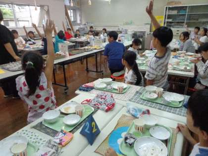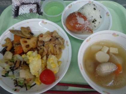 盛りつけ方を学びました。主食・主菜・副菜・汁ものの