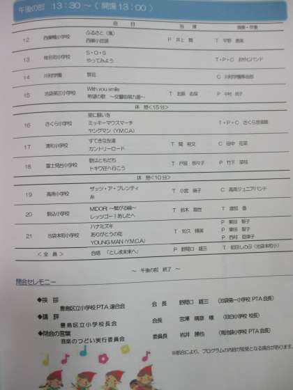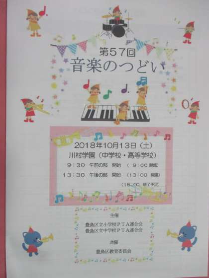 ○先週の土曜日、10月13日に、豊島区小学校PTA連合会主催の第57回音楽の集いが、川村学園の講堂で行われました。さくら小学校からは、さくら音楽隊が出演しました。