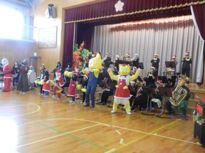 演奏したのは、星に願いを ミッキーマウスマーチ ヤングマン の3曲です。どれも乗りのよい曲で、会場からは、手拍子がわき起こりました。また、演奏後半のヤングマンになると、舞台上には、さくら小学校のマスコット サクタマちゃん も現れ会場を盛り上げてくれました。