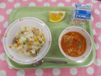 給食メニューが登場しました。パエリアはスペインの代表的な