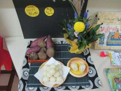 ○9月14日は、十五夜です。そんな十五夜の1日前の今日、給食では、中秋の名月献立が出されました。詳しい解説は、小山栄養士さんの 本日の献立 に任せますが、給食室前に、本物のお月見飾り が飾られていたのにはビックリしました。