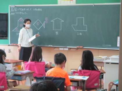 1〜2年生は担任の先生に講師の先生が加わり2クラスの授業を3分割して指導しています。(1年生だけは3クラスなので、3クラスを4分割しています)。同様に、3〜6年生は、担任の先生に少人数指導の先生が加わり、2クラスを3分割して指導しています。