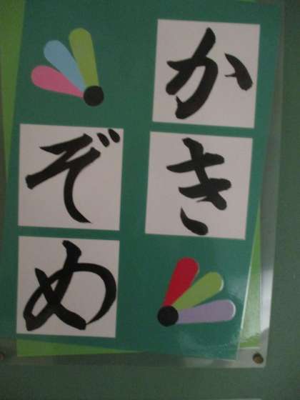 ・1年生:はじめてのかきぞめ。字の形に気をつけてかきました。