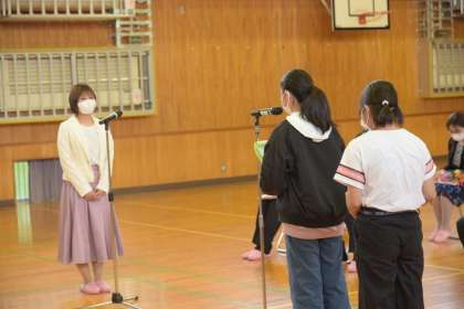 離任された先生の話が終わると教室から大きな拍手が体育館に届きました。