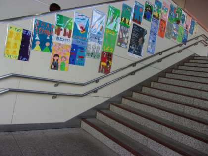 4月・5月の図工の授業で描いた『社会を明るくする運動』のポスターが、東長崎駅北口階段に掲示されました。