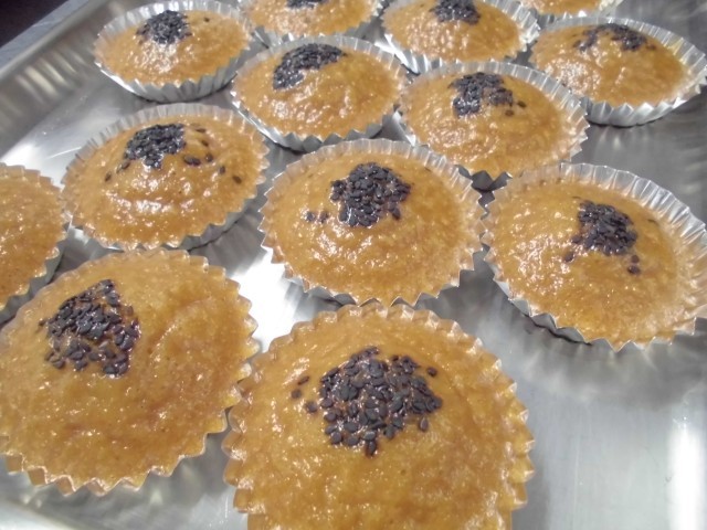低学年の児童は、「これなあに?マドレーヌ?」「黒砂糖ってなに?」「この黒いの(黒ごま)なに?」と