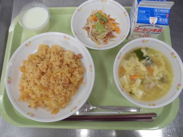 今日は「キムタクチャーハンってキムタクが作ったんですか?」と質問をされることが多かったです。キムタクチャーハンは、キムタクではなく、池本小の調理員さんが作ってくれました!キムチとたくあんを具材にしたチャーハンで、長野県塩尻市発祥の人気給食メニューキムタクごはんをアレンジしたものです。たくあんのカリカリとした食感と塩気、キムチのうま味が特徴で、食欲をそそる味わいです。今日もしっかり食べてくれていました。