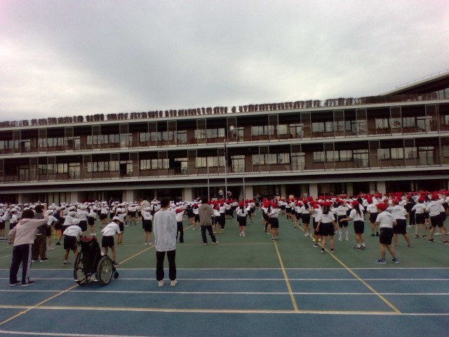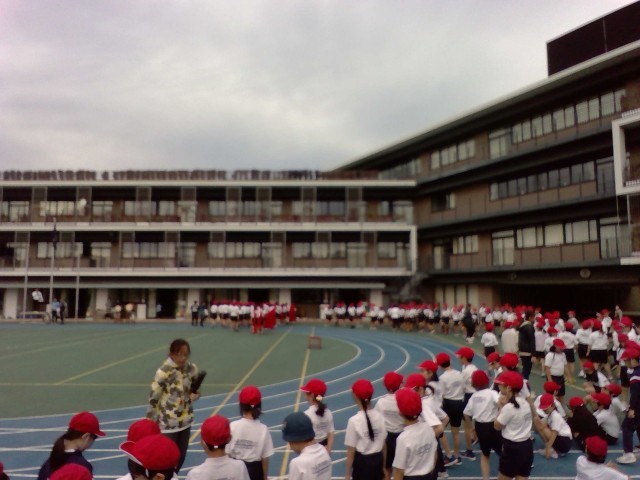 10月31日(金)の1時間目に2回目の運動会全体練習を行いました。最初に集合隊形から準備体操の隊形の確認、準備体操、開会式後の移動等を確認して、実際に行いました。