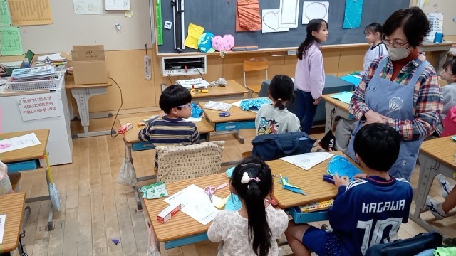 2年生図工「もみ紙フレンド」
