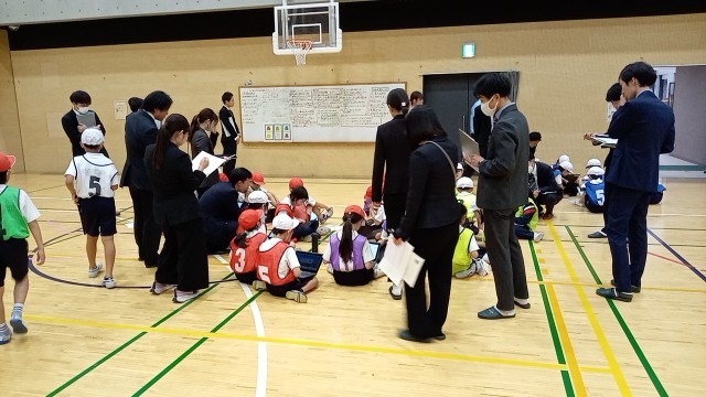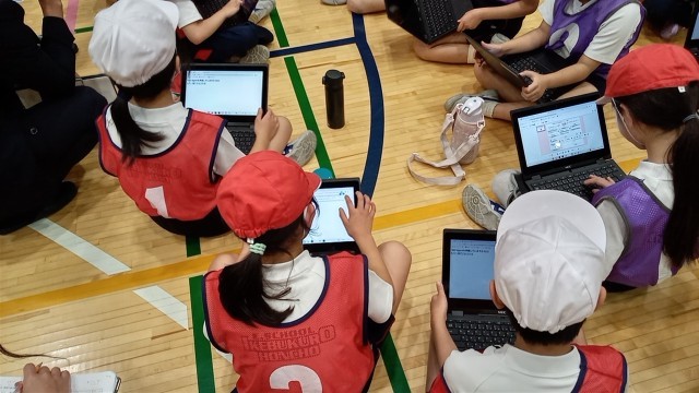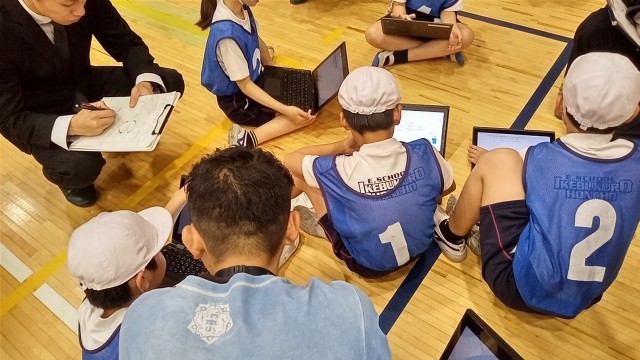 約30分間、ゲームをした後15分間、振り返りを行い、タブレットに一人一人入力していました。時間をかけて振り返りをしています。
