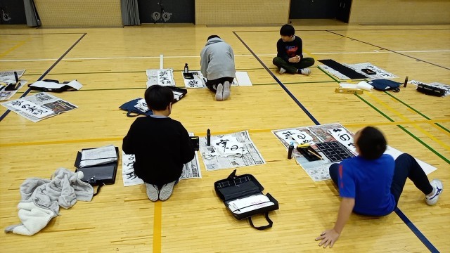 5・6時間目は、6年生が体育館で書初めを行っていました。みんな集中して「夢の実現」を書いています。