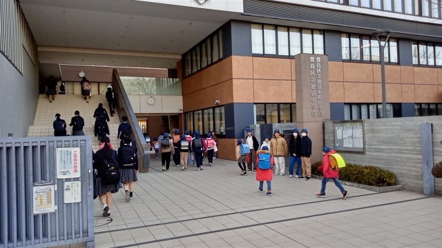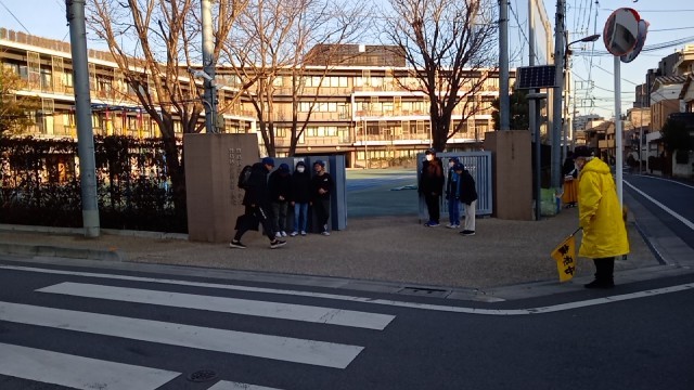 今週から小中連携あいさつ運動が始まります。本日は、5年1組が当番です。池袋中学校の生徒と一緒に登校する児童・生徒にあいさつをしています。