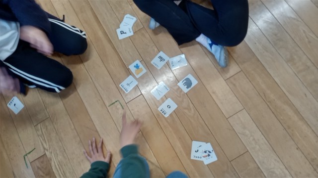 4年生の音楽の授業で、音楽記号を当てるかるた遊びを行っていました。先生が読み上げた文章から、休符やクレッシェンドなど、楽しく覚えられそうです。