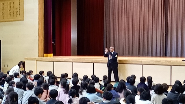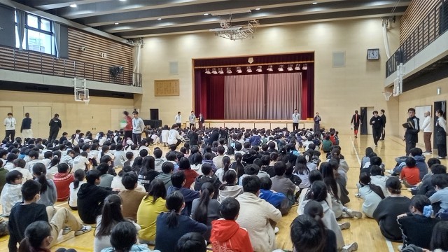 本日の避難訓練は、小中合同の不審者対応訓練でした。中学校に不審者が現れたという想定で行われました。池袋警察署の方に不審者を行っていただきました。小中学校それぞれに避難し、池袋警察署の方にお話をいただきました。