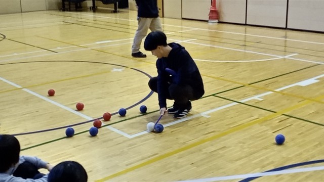 1月23日(金)、5年生が体育館で東京都教育委員会の夢未来プロジェクト事業でパラアスリート等によるボッチャ体験をしました。
