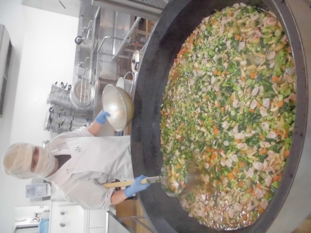 今日の「節分汁」には「鬼」が、「きなこ豆」には鬼を退治するための「豆」を使っています。