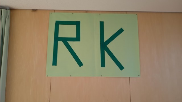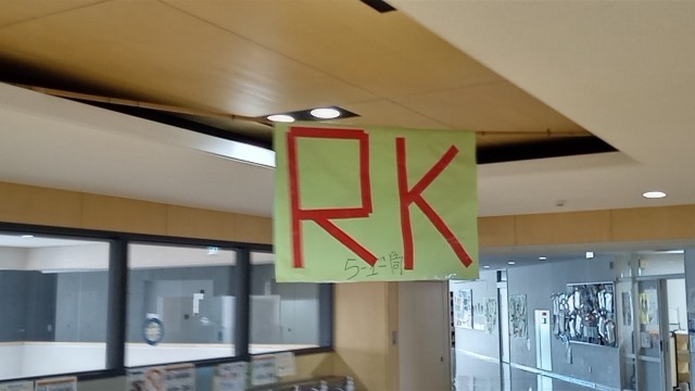 学校安全委員会の子供たちが考えたRKの表示が廊下に掲示されています。RK(アールケイ)→「歩け」、つまり「廊下は歩こう」です。これを見て子供たちは廊下歩行を守っています。
